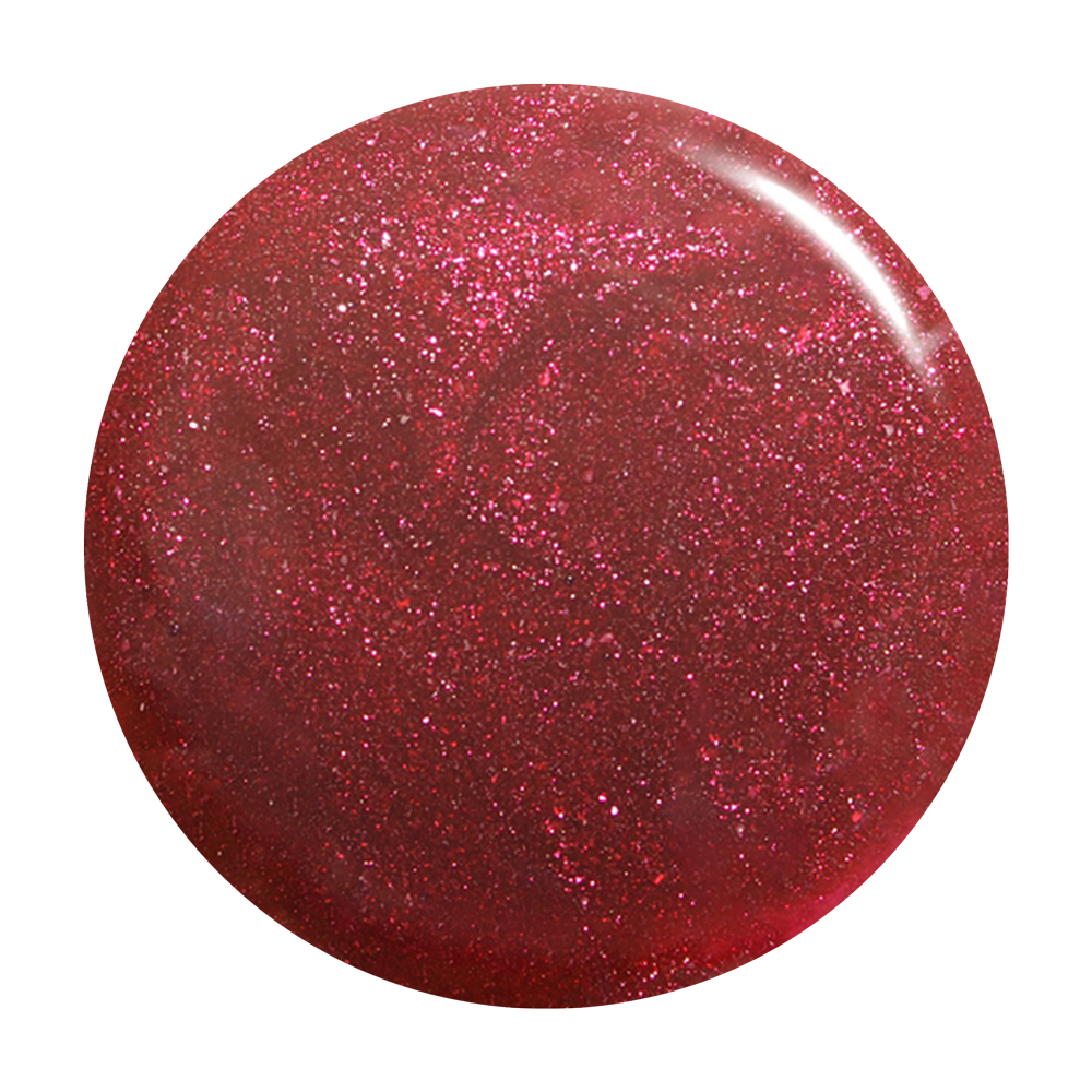 Wine red. Dark. Sparkles. Opaque. Warm undertone.